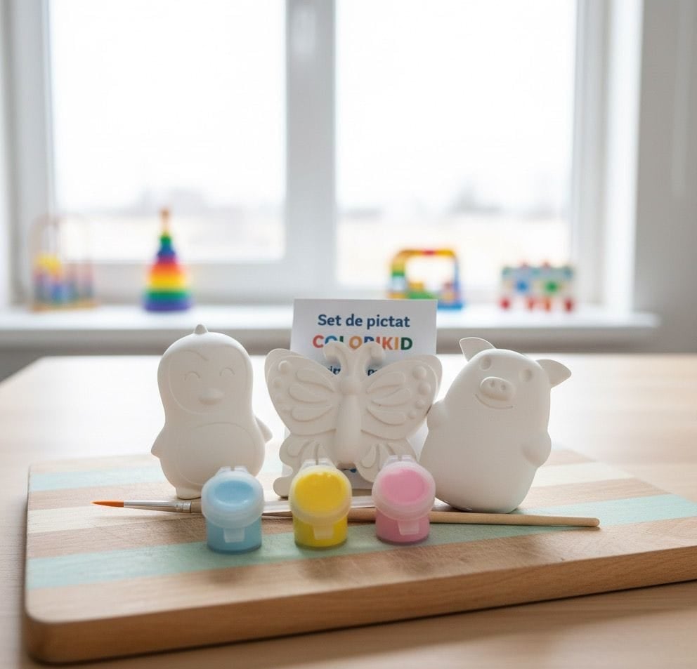 Figurinele sunt realizate din praf ceramic și au suprafața netedă, ideală pentru pictură. Copiii pot explora culorile, își dezvoltă coordonarea mână-ochi și creativitatea într-un mod plăcut și sigur.
